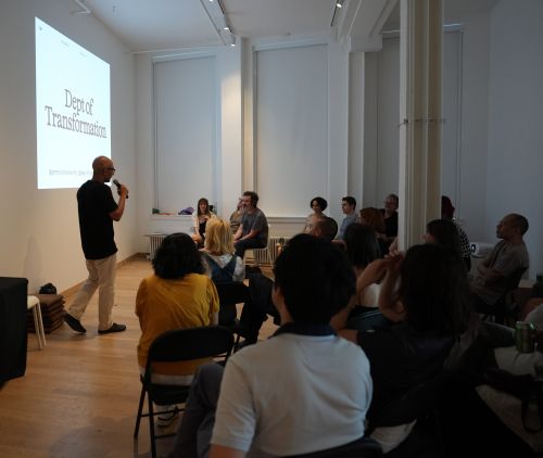 Department of Transformation (D🌏T) is an artist-organized group that mobilizes the power of art and design towards individual, collective, and structural transformation. D🌎T was founded by designer, author, and educator Prem Krishnamurthy and takes shape through workshops, events, publications, and community-based activities (+ karaoke!) around the world.