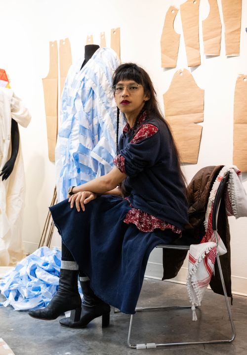 Hai-Wen Lin is an artist from Elk Grove, California, currently working somewhere beneath the Chicago sky. Their work addresses autobiographical narrative as it echoes across history and the natural environment, often moving through metaphor, etymology, sunlight, wind, and the way time passes perfectly when you are out walking on a beautiful day. Lin is an alumnus of the Skowhegan School of Painting and Sculpture, received a M.Des in Fashion, Body and Garment from the School of the Art Institute of Chicago, and a BA from the University of California, Davis. They are a recipient of the Museum of Art and Design’s Burke Prize, the Ellis-Beauregard Visual Arts Award, and a Luminarts Visual Arts Fellowship. Lin has been an artist-in-residence at MacDowell, the Bemis Center for Contemporary Art, Lighthouse Works, Ox-Bow, the Grand Canyon National Park, among many others. They have taught workshops supported by the Houston Center for Contemporary Craft, the Mint Museum, the Heritage Museum of Asian Art, and the Midwest Society for Acoustic Ecology and have exhibited their work in recent solo exhibitions at the Chinese American Museum of Chicago (2025), the Centre for Cultural and Artistic Practices (2025), Contemporary Art Museum St. Louis (2025). You can often find their work by looking up.