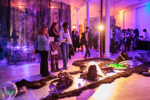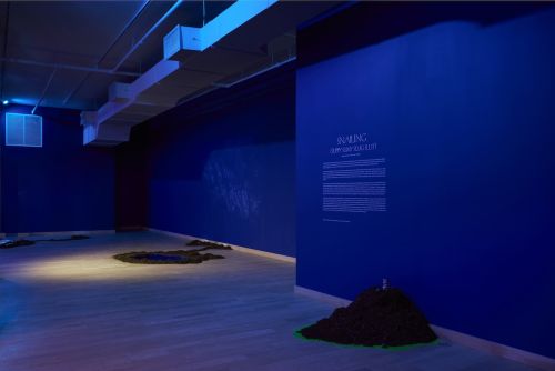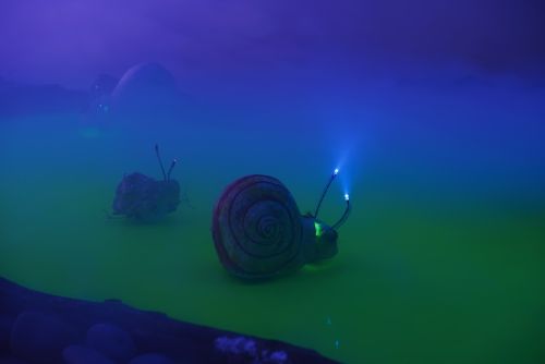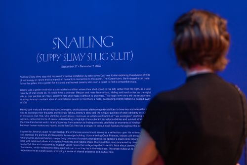 Having both male and female reproductive organs, snails possess electromagnetic abilities to have sex and telepathic abilities to exchange their thoughts and feelings. Taking Jeremy’s story and the unique qualities of snail sexuality as the subject of this piece, Duk Hee, who identifies as non-binary, continues an artistic exploration of “sex ecologies,” pushing against western, patriarchal norms of sexual understanding to highlight the exuberant sexual possibilities and survival strategies of the more-than-human world. Jeremy’s journey from isolation to finding a mate is paralleled by moments of kinship that arise between human visitors and robotic snails that Duk Hee has arranged in various snail habitats throughout the exhibition.
