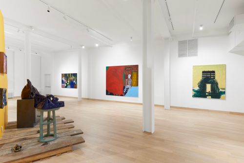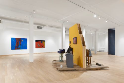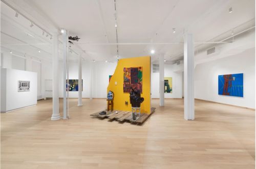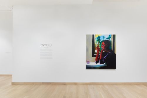 June 16–July 29, 2023Dwelling is an exhibition of works by Marcus Jahmal, Cheyenne Julien, Ho Jae Kim, Kenrick McFarlane, Kyung-Me, and Woody De Othello that addresses our complicated relationship to ideas of home. Considering the central place that figurative painting has gained in contemporary art practices the show explores ever-evolving approaches to self-representation. The artists gathered here engage with abstraction, naturalism, and photorealistic precision in order to accentuate the psychological and socio-spatial tension of their built environment, especially domestic interiors. While at times perspectives of home can sustain and nurture our bodies, they can also suggest the entrapment of people’s subjectivities. Following this threat, the artists in this exhibition explore psychologically taut environments that imply both a sense of physical embranglement, and a glimpse at complex emotional states through thick washes of color, symmetry, and dramatic shifts in perspective. Gestural abstraction, expressionist color, and a sense of comic formalism are used to portray emotional, physical, and psychological impact. They share a sense of indirect unease as the figures depicted do not seem able to address the viewer directly.