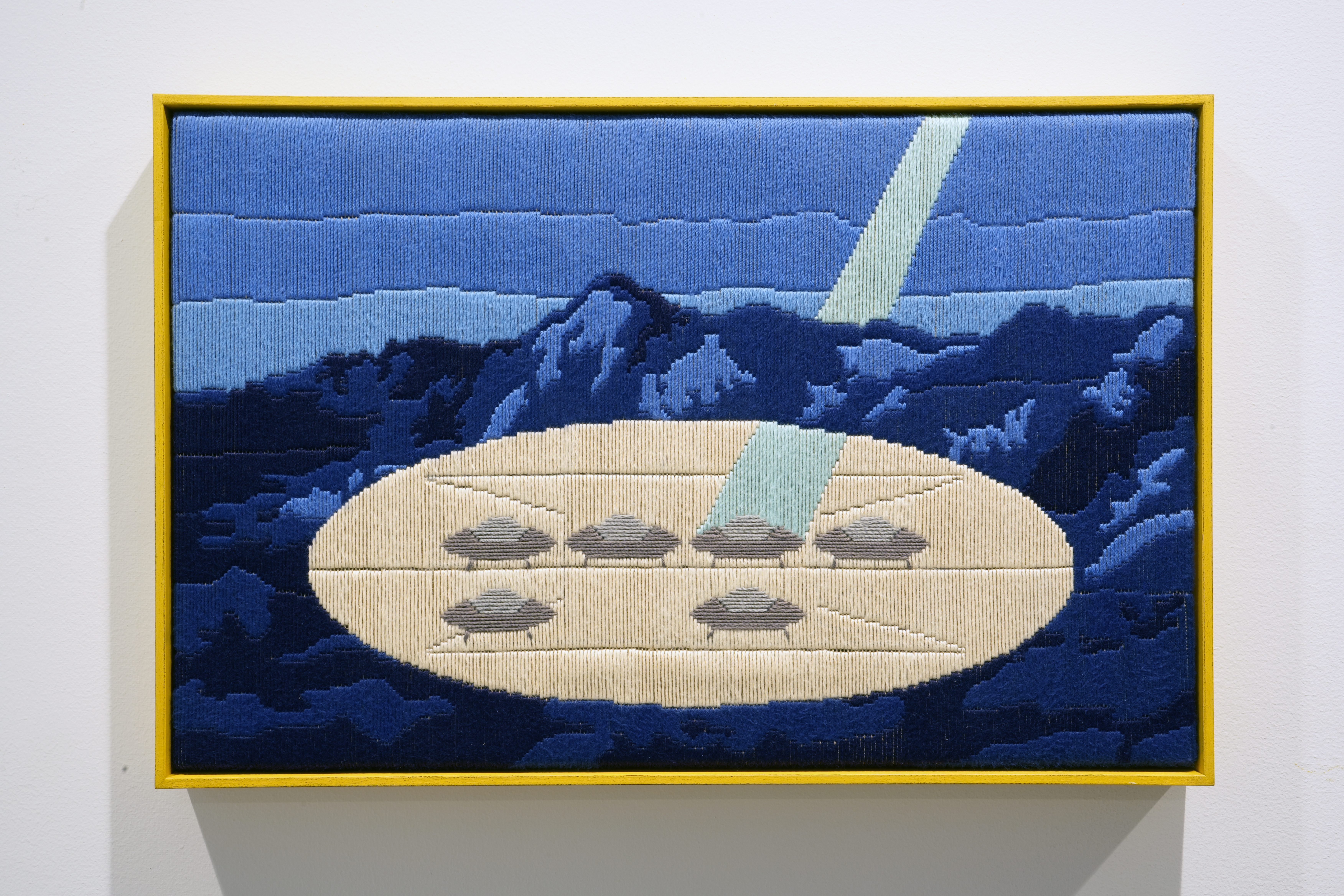 Alongside a discussion of the film, dos Reis will also address her new series of four tapestries, which are inspired by the speculative landscapes of Serra da Gardunha in the Portuguese Interior, a place of both paranormal sightings and religious apparitions. These myths have developed into claims that the mountain is hollow, concealing a UFO hangar inside.