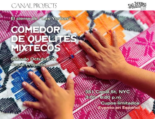 The Quelites Mixtecos Dining Room will open its doors on Saturday, October 21, from 3:00 pm to 6:00 pm on the lower level of Canal Projects. The program will include the presentation of the first version of a zine featuring Mixtec recipes and Voces life stories that Liana is producing along with Voces.