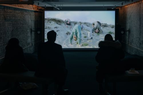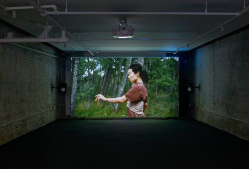 Shot in the pine forests and dunes of the Curonian Spit, the video performance gradually unfolds through a specially conceived song that channels the desires of an entity shapeshifting across different genders, voices, and beyond-human embodiments. Featuring a cast comprised of local youth, alongside performer and choreographer Mami Kang, the movement rejects the verticality of the human figure by unfurling it into the landscape so that the performers’ bodies are constantly pulled toward the earth and towards each other. In the film, a hypnotic voice sings lyrics that draw from the writings of biologist Lynn Margulis and science-fiction author Octavia Butler and their shared ideas on symbiosis, mutation, and hybridity.